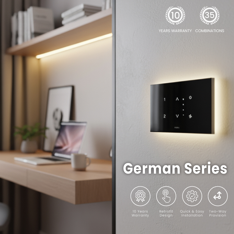 The German Series brings together clean design and robust functionality. Every touch panel is crafted with a minimalist aesthetic, delivering a refined smart-home experience that blends effortlessly into any modern space.